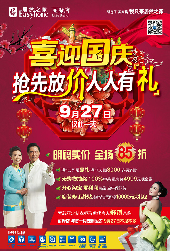 最后,最最重要的一个消息,9月27日当天,舒淇本人将会现身居然之家丽泽店,买不买东西先不说,可以看美女,顺道免费抽个奖,还不耽误十一放假,何乐而不为。