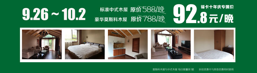 9.26-10.2 持福卡专享中式木屋/莫斯科木屋 92.8元/晚